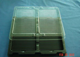 | A-PET:質硬,韌性好,強度高,表面光亮,有透明和多種顏色的片材、用途較廣。抗靜電的PET常用來製作電子托盤,適用於高周波打點封合。片材成型厚度最大可達1.5 mm |